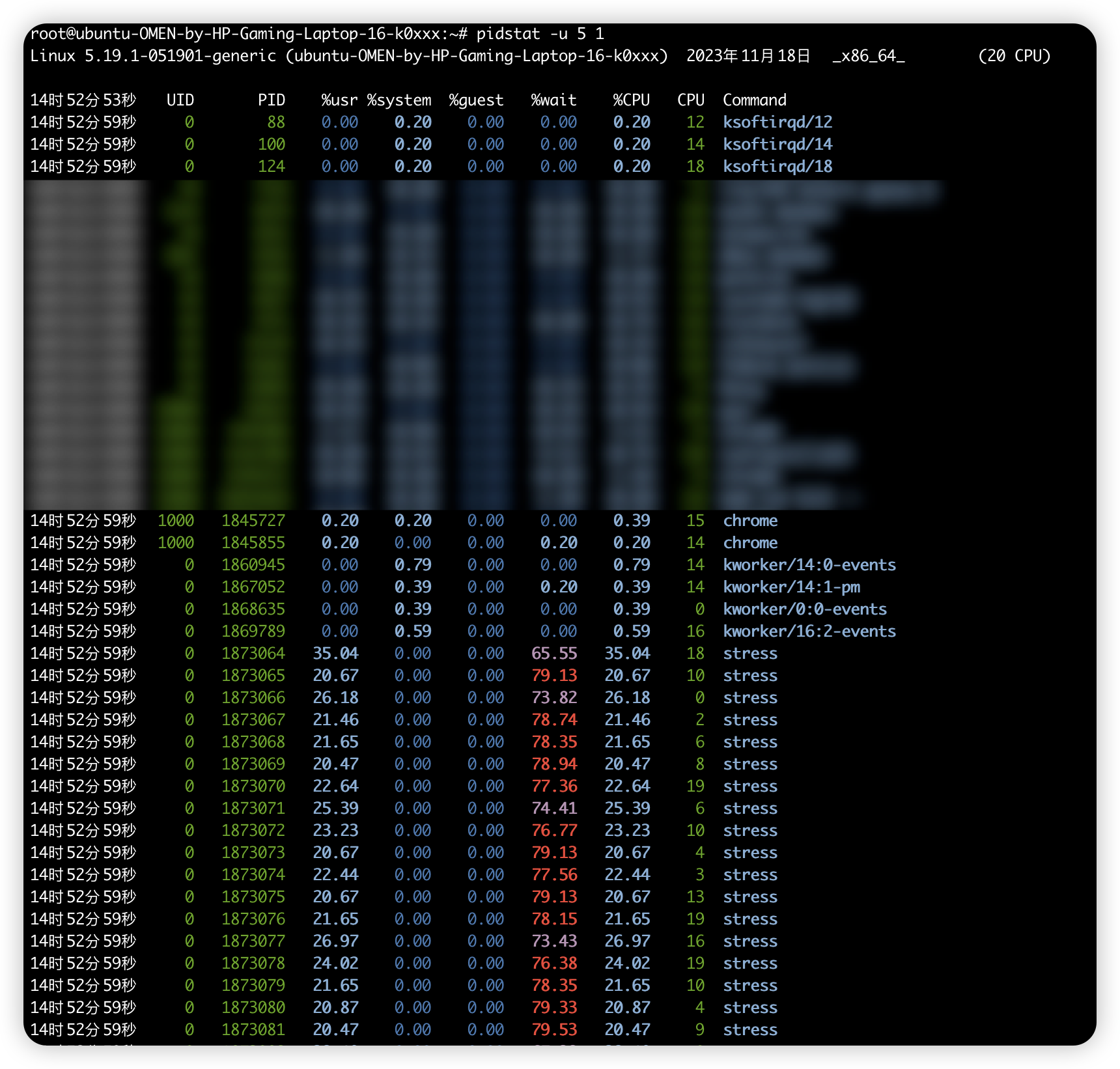 pidstat 初步判断到底是 cpu 计算量大、还是进程争抢过大、或 io 过多