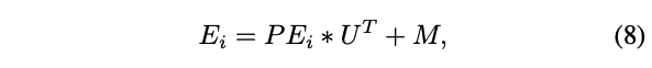 作者还会从训练集中计算主特征值矩阵(U)和均值向量(M),然后通过下面的方程将预测的PCA投影到表达变形向量上: