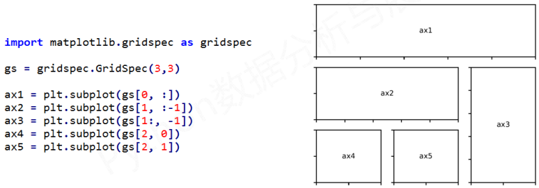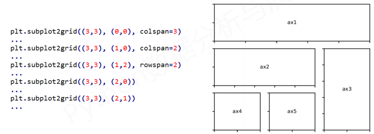 其中nrows表示横向划分多少的区域, ncols表示纵向划分多少的区域, 子区域的标号是从1开始的, 从上到下从左到右依次排序