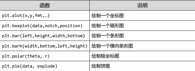 为了简洁使用, 可以使用matplotlib.pyplot这个绘制各类可视化图形的命令子库, 类似于快捷方式的库来简化操作