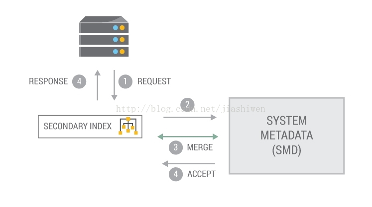Aerospike将索引创建信息保留在特殊的全局维护的数据结构中-系统元数据(SMD)。系统元数据模块位于多节点多次索引模块中。次索引的变化最终由SMD触发。