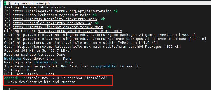 注:可以将termux进行换源,最好采用国内源,例如:清华源等