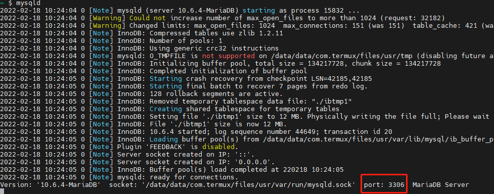 目前termux只支持直接安装mariaDB,如想安装其他数据库,可以先在termux上安装linux,后再安装其他数据库。