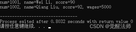 cout <<"num=" <<num <<", name=" <<name <<", score=" <<score <<", wages=" <<wages <<endl;