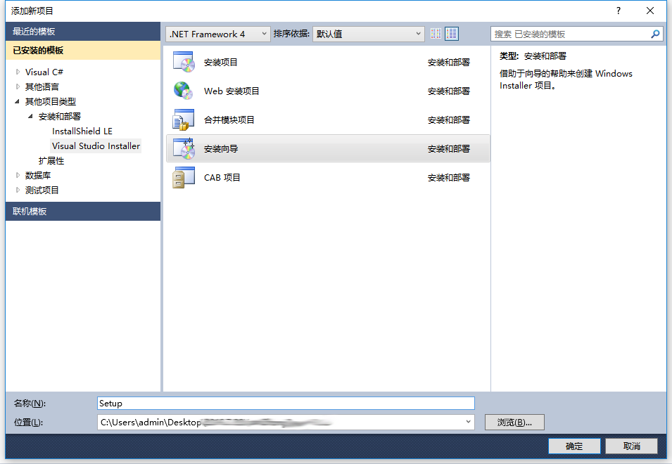第一步,右击“解决方案XXX”->添加“新建项目”-》“其他项目类型”-》“安装和部署”-》“安装向导”