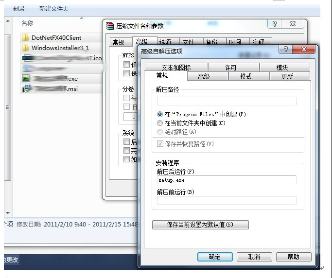 这个时候给客户安装时拷贝过去的内容较多,也容易安装出错,如果把这些安装内容都打在一起,形成一个.exe 文件,就比较方便了,此时,可以用winrar的自解压格式压缩文件来实现,实现过程: