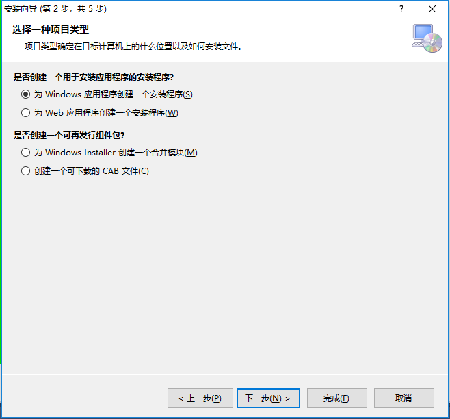 这里保持默认即可“为WIndows应用程序创建一个安装程序”-》