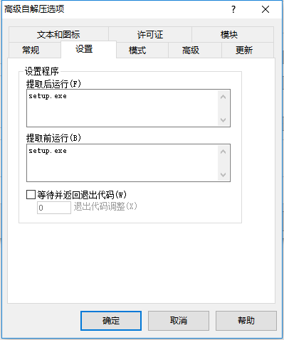 或者遇到这种情况,那么提取后运行(点击安装时运行)和提取前运行(生成.exe文件时运行,将压缩成的.exe文件安装包的图标立马换掉,不会等到点击安装时更换)都要加上要运行的exe文件