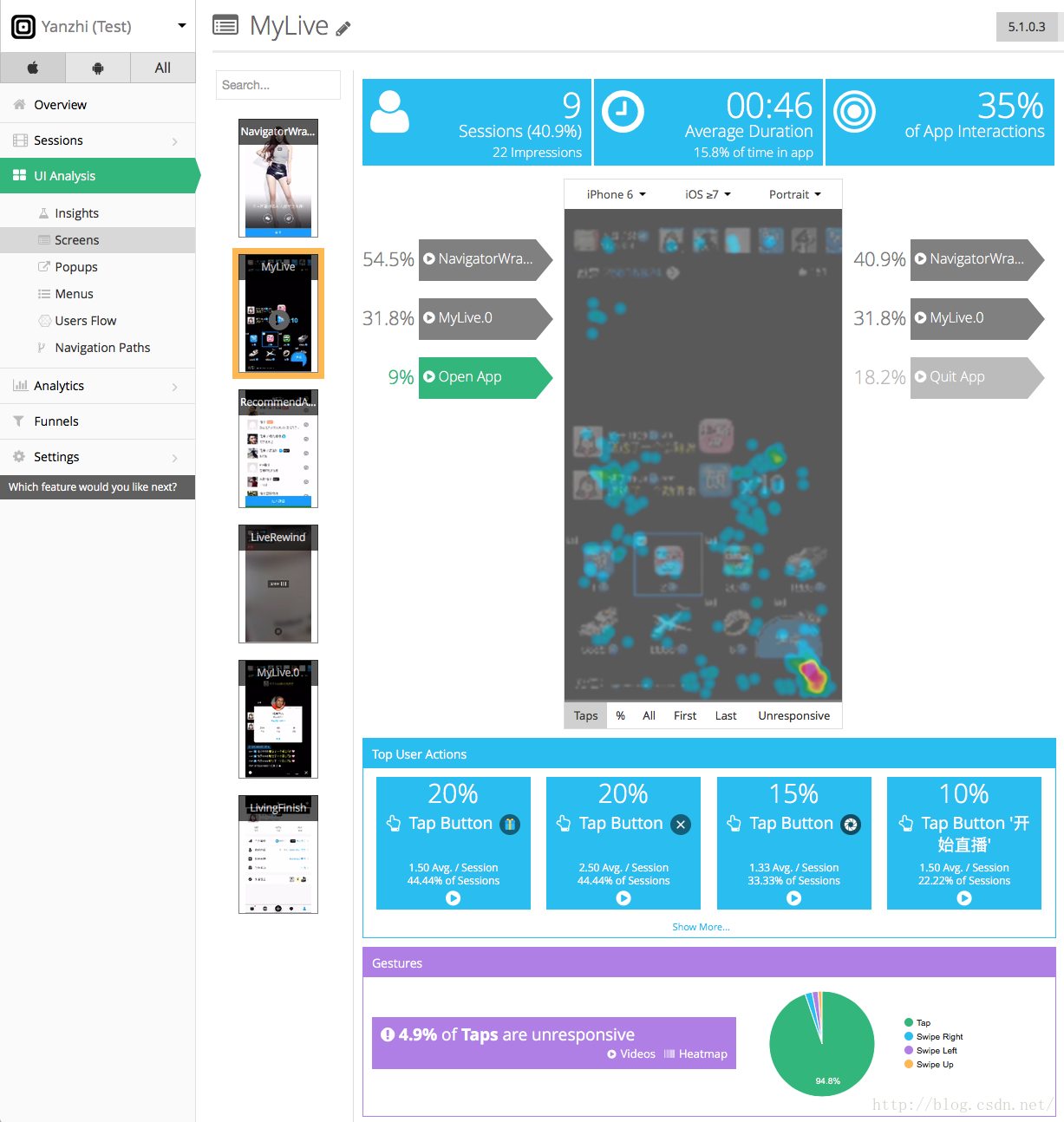 本质上appsee是一款统计分析产品,类似友盟,但他们的产品有其他各家国内外统计分析平台所不具备的特点。