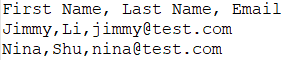 例如:下面是一个含有三行内容的csv文件