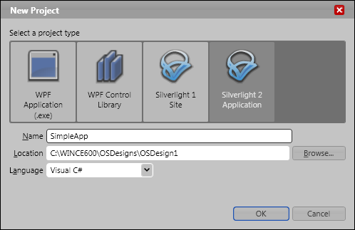 You may develop your Silverlight for Windows Embedded application also using Visual Studio 2005 or 2008 Smart Device application if you generate an SDK from your R3 OS design and install it on your development PC, but for this tutorial we will keep things simple...