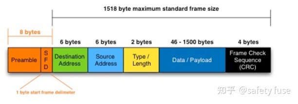 由于以太网EthernetII最大的数据帧是1518Bytes,刨去以太网帧的帧头(DMAC目的MAC地址48bits=6Bytes+SMAC源MAC地址48bits=6Bytes+Type域2Bytes)14Bytes和帧尾CRC校验部分4Bytes那么剩下承载上层协议的地方也就是Data域最大就只能有1500Bytes这个值我们就把它称之为链路层MTU。