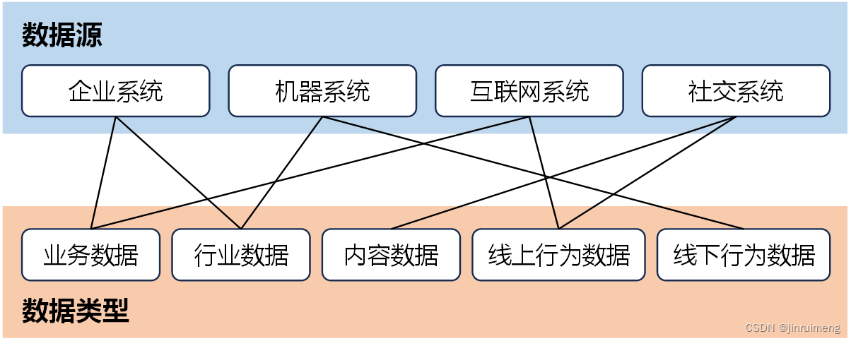 不同的数据源包含不同类型的数据,例如传感器数据通常是结构化数据,而社交媒体中的帖子和评论则属于半结构化数据,而照片和视频则是非结构化数据。