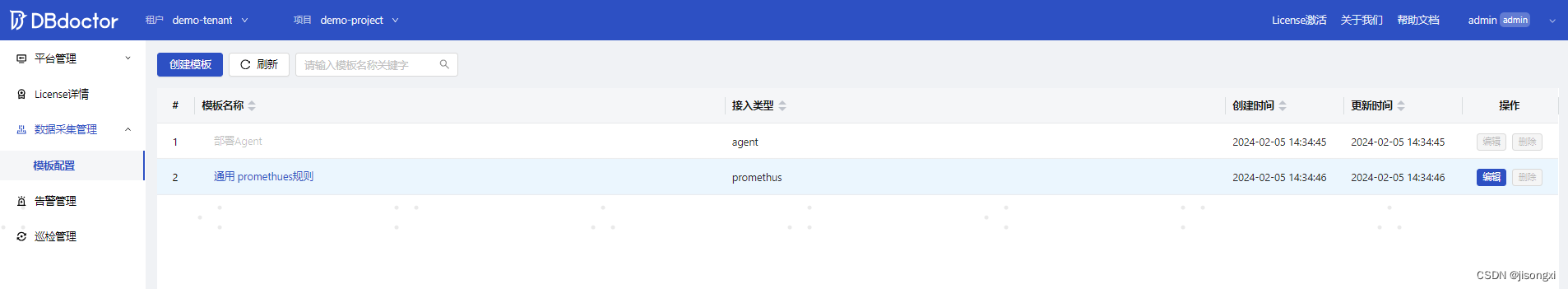 DBDoctor使用自定义模板采集实例指标 注意: 系统内置了第三方参数配置,可针对当前依赖的第三方环境配置,进行灵活配置,如我们可以新增一个aliKey 对应的value设置为真是的某一个值,这样我们在python代码中,可以使用td = req.get('thirdParty')来获取所有的第三方参数,然后再获取某一个具体的第三方参数的值,aliKey= td.get('aliKey'),这样我们在python代码中即可使用我们获取到aliKey的真实值了。3.模板创建成功后,我们新增纳管实例时,数据采集方式可选择我们新增的数据采集方式。