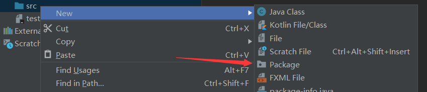 点击src -> 右键->New->Package