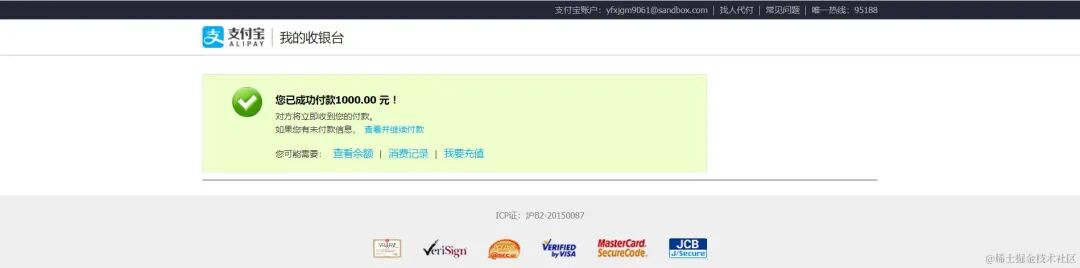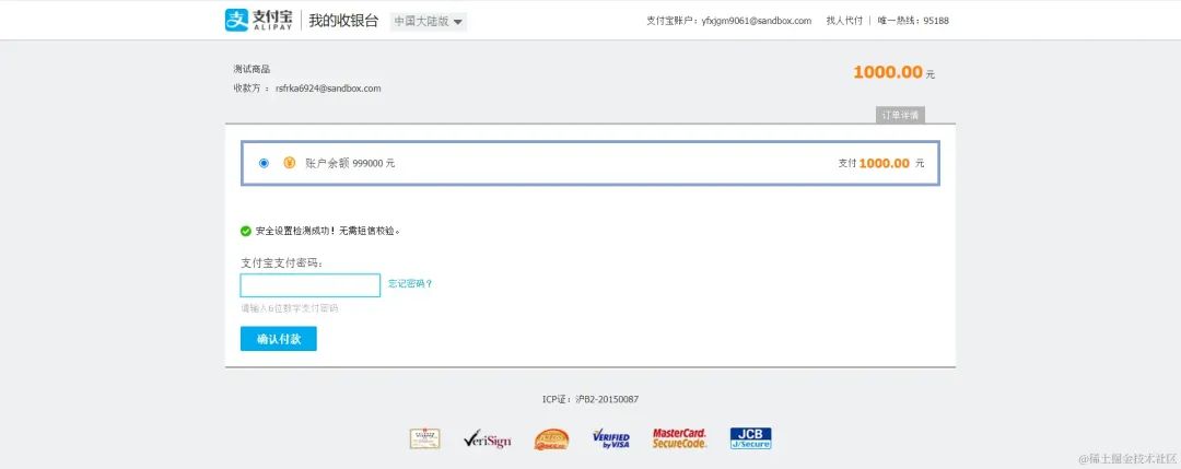 需要有支付宝沙箱:提供一个虚拟的支付环境,用于测验调试,点击这里进入沙箱环境: