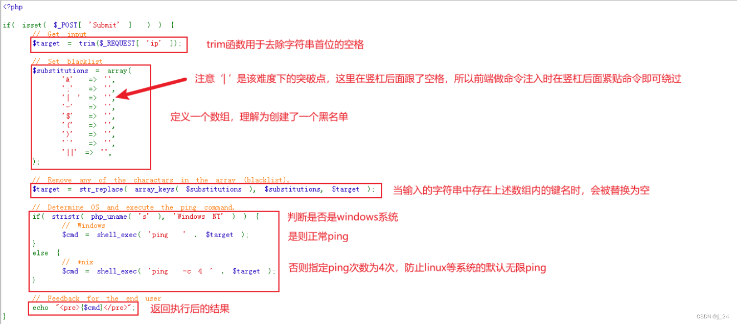 审计dvwa高难度命令执行漏洞的代码,编写实例说明如下函数的用法 这个函数用于查找字符串中的某一部分并替换为新的内容。这个函数主要用于删除字符串首尾的空白字符或者其他特殊字符。例如,如果你有一个字符串 " hello world ", 并且你想去掉两边的空格,你可以使用。这个函数用于查找字符串中是否存在指定的子串,并返回从匹配点开始到结束的部分。从用户输入中移除特殊字符,例如。