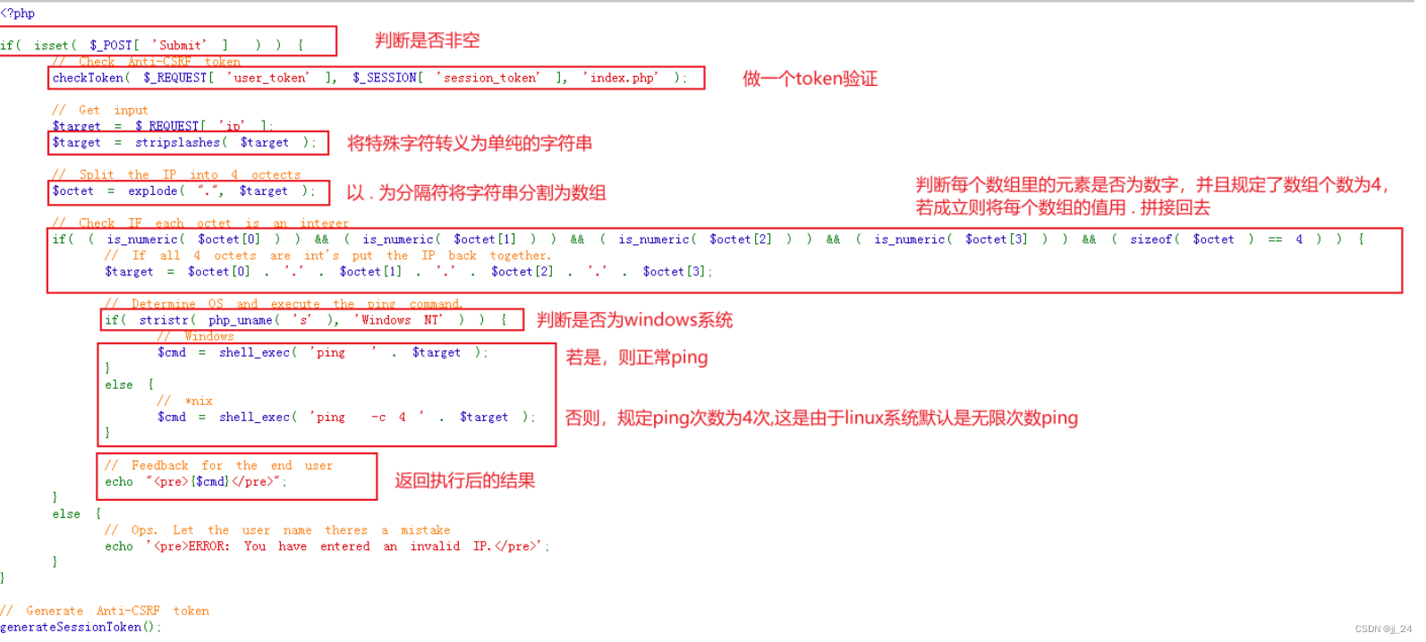 审计impossible难度的代码,说明其中函数的作用 explode函数:使用字符串对另一个字符串进行分割,并且以数组形式返回。这里演示的是以 ' . ' 作为分割符将2023.6.9进行了分割,并返回成数组。checktoken函数:主要是进行一个token验证,可以防止请求伪造。这题不再使用黑名单过滤而是使用了白名单。