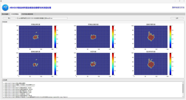 静界有限元针对层合板多层损伤投影叠加问题,开发了专门的后处理工具(见下图),将ABAQUS仿真得到的多层损伤在面内进行投影叠加,并且自动统计不同失效模式的覆盖面积。
