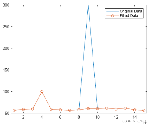如果 A 是矩阵,则 filloutliers 分别对 A 的每列进行运算。