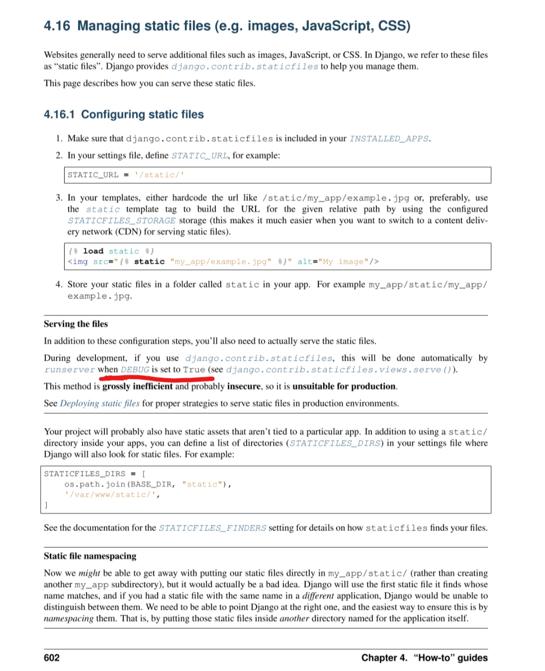 一开始就搜索:Django配置静态文件,很多文档都没有说要开启Debug才会加载静态文件这个问题,看官方文档的时候居然都没注意到。(贴上官方文档)
