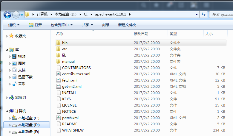 解压到本地磁盘,如D:\CI\apache-ant-1.10.1