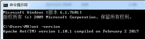 2.输入命令ant -version