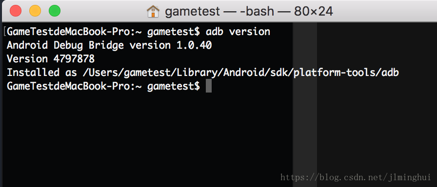 2.下载并更新android SDK;示列中sdk存放路径为/Users/gametest/Library/Android/sdk