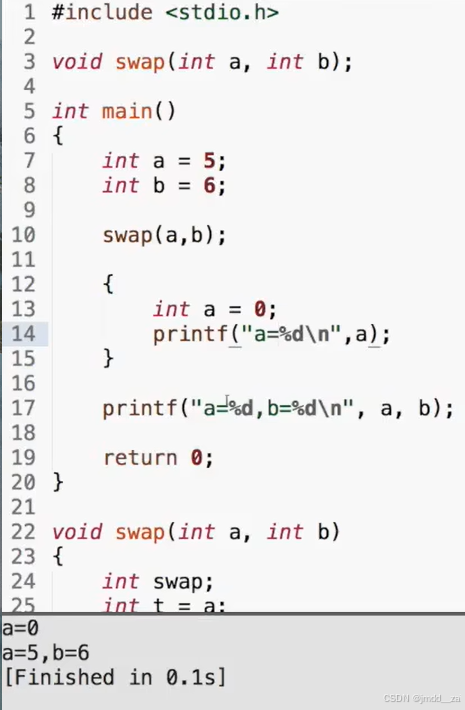 ·块里面定义了和外面同名的变量则掩盖了外面的