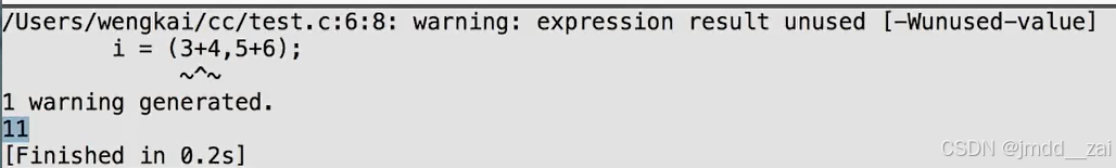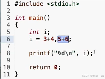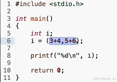逗号用来连接两个表达式,并以其右边的表达式的值作为它的结果。逗号的优先级是所有的运算符中最低的,所以它两边的表达式会先计算;逗号的组合关系是自左向右,所以左边的表达式会先计算,而右边的表达式的值就留下来作为逗号运算的结果