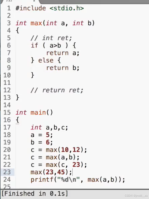 【函数的先后关系】 C的编译器自上而下顺序分析你的代码,所以要把要调用的函数放在前面,后面调用时才能检查你对该函数的调用是否正确