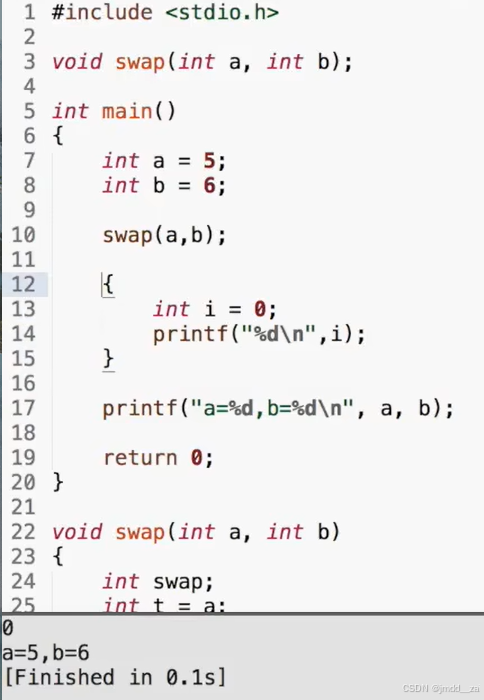·程序运行进入这个块之前,其中的变量不存在,离开这个块,其中的变量就 消失了
