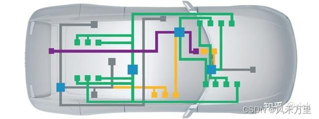这个时候,需要对EEA做点改变了。是不是首先想到,要建立总线的概念?系统工程师首先在车里布置好总线,而后,再把各ECU挂载到总线上,这样当需要增加新的ECU时候,只要ECU是按标准接口进行设计的,直接挂载到总线即可,非常的方便。这种以统一协议为基础的车载网络总线技术就是分布式ECU的EEA架构。