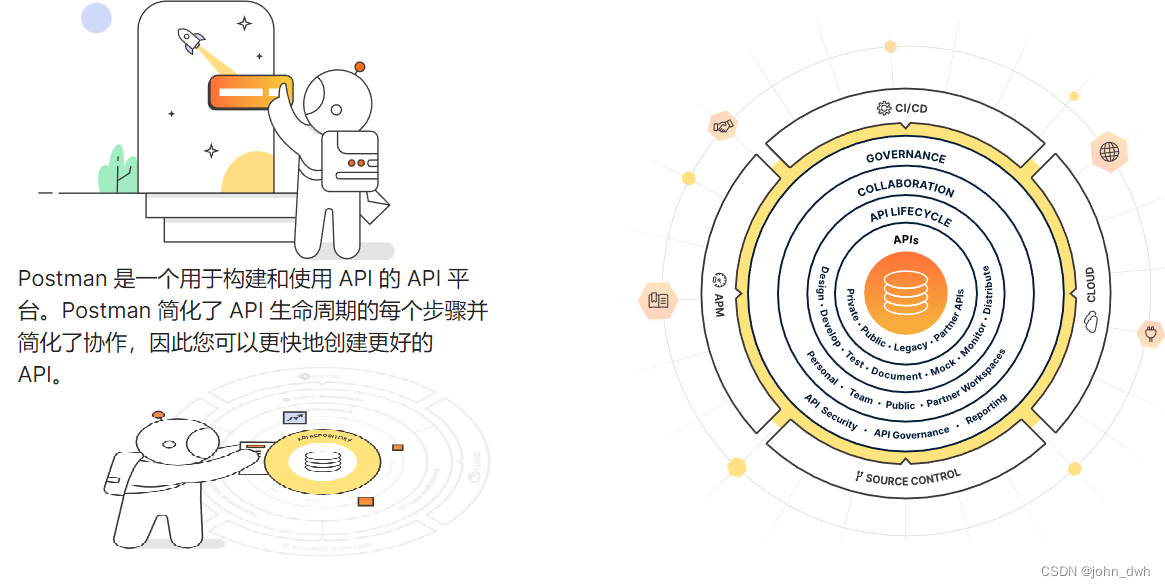 Postman API 平台为团队提供高生产力,为开发人员提供高质量的 API,并为全球组织提供无懈可击的治理