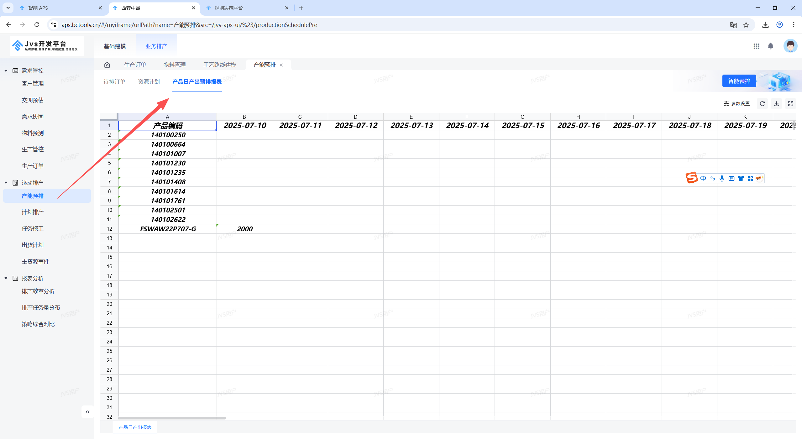 3、产能预排产品日产出只展示有排产计划的产品,以前是展示全量产品。不利于查看和排查,现在只展示有排产计划的产品。