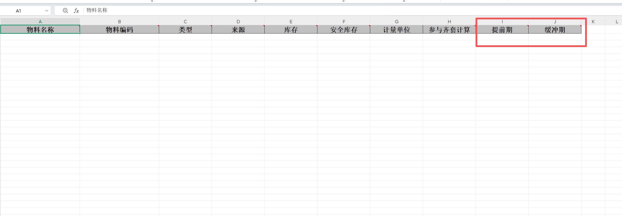 1、物料管理模版下载后,支持导入提前期和缓冲期(需带单位导入,如3D代表3天):