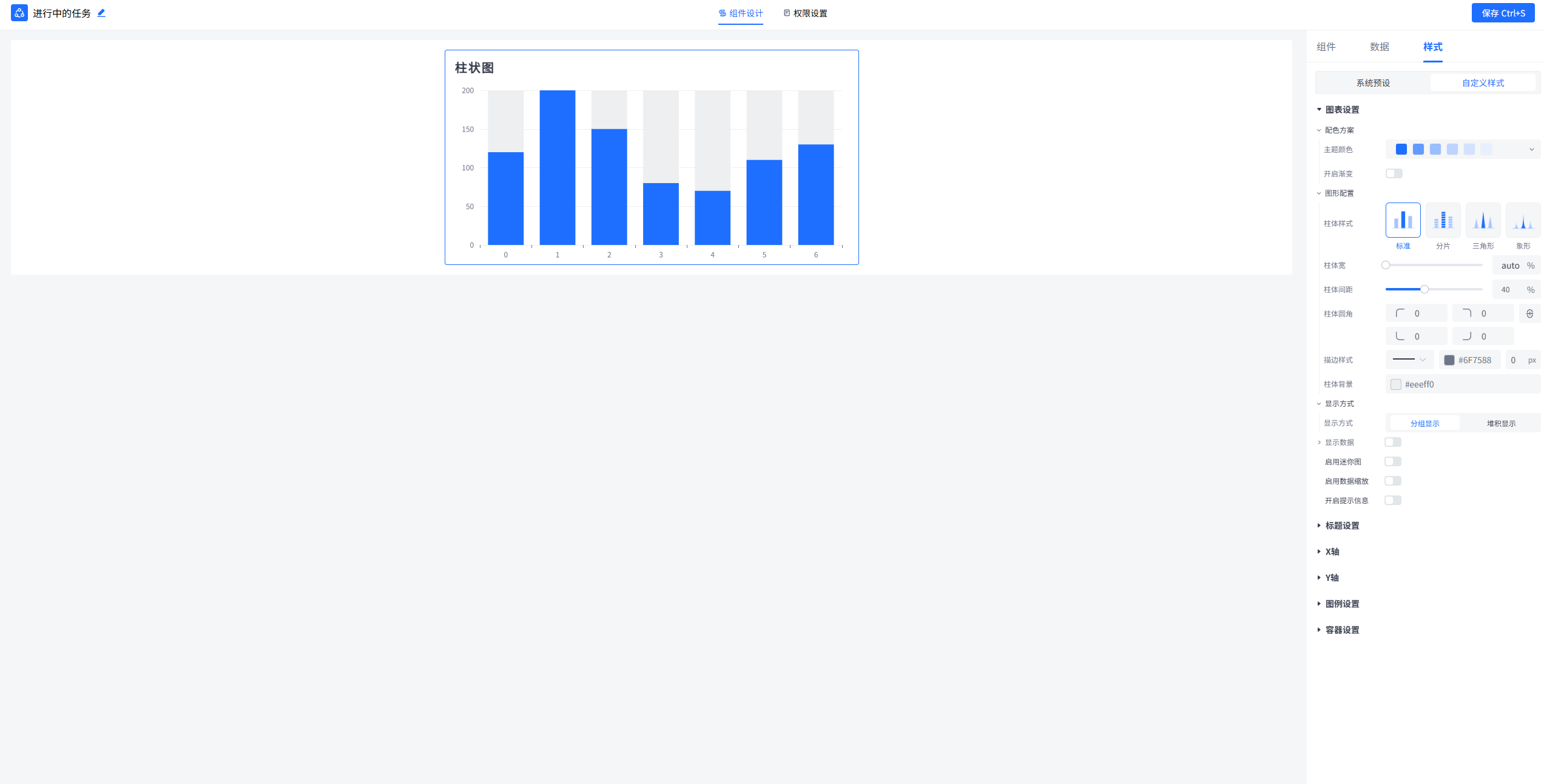 3、组件库新增柱状图组件,可按照统计项的选择展示任务及目标的相关数据。