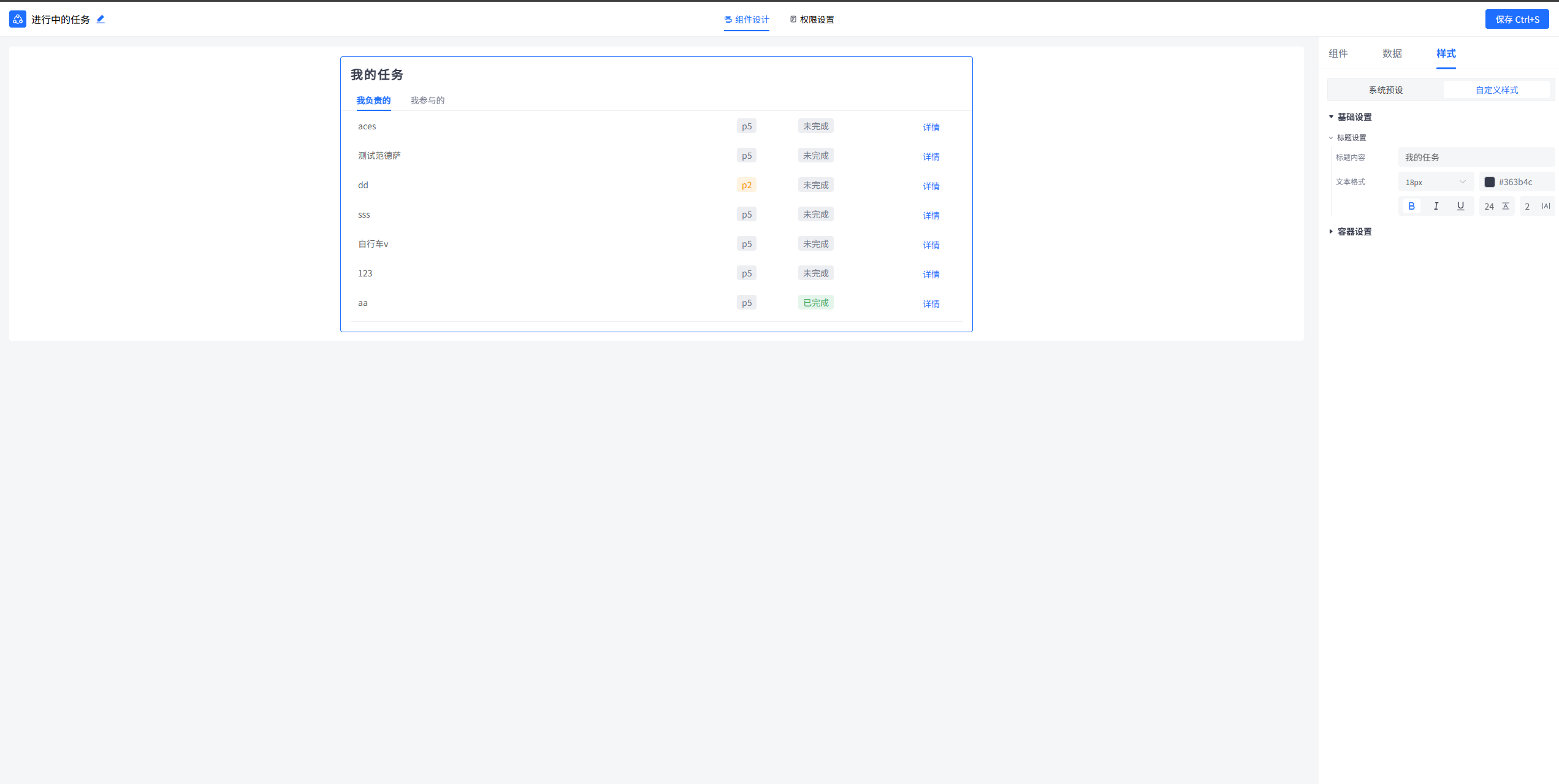 4、组件库新增我的任务组件,显示当前我负责的以及我参与的数据。