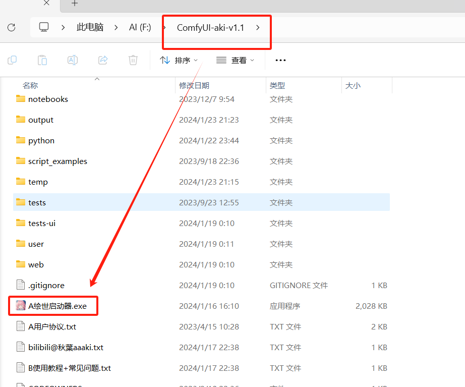 点击A绘世启动器.exe(没错,跟webUI一样的启动器)