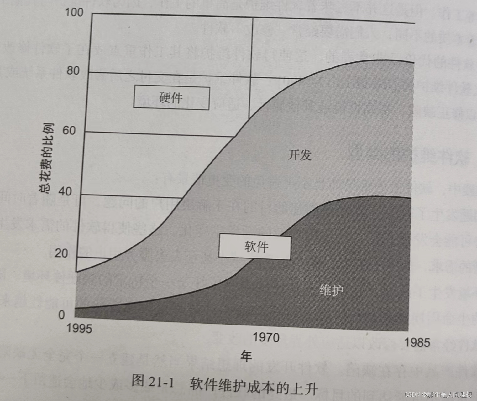 在软件发展趋势上,人们花费在软件上的成本逐渐超过硬件并最终占有支配地位,人们在软件维护上花费的成本也逐渐超过了软件开发(从需求到交付)~