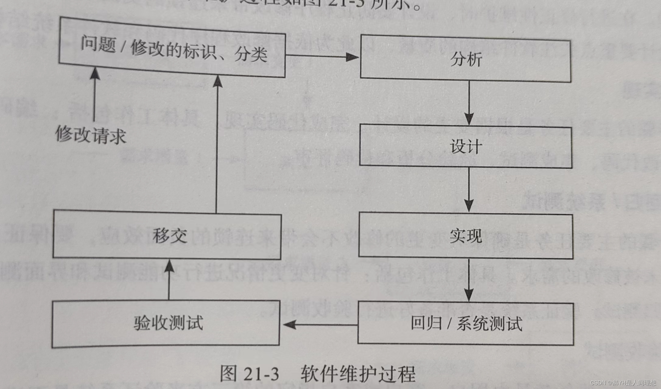 描述了软件交付之后的软件修改活动,明确定义了软件开发与软件维护的界限:
