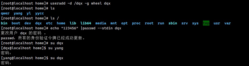 useradd | 创建用户 | useradd -d /admin -g wheel admin | |