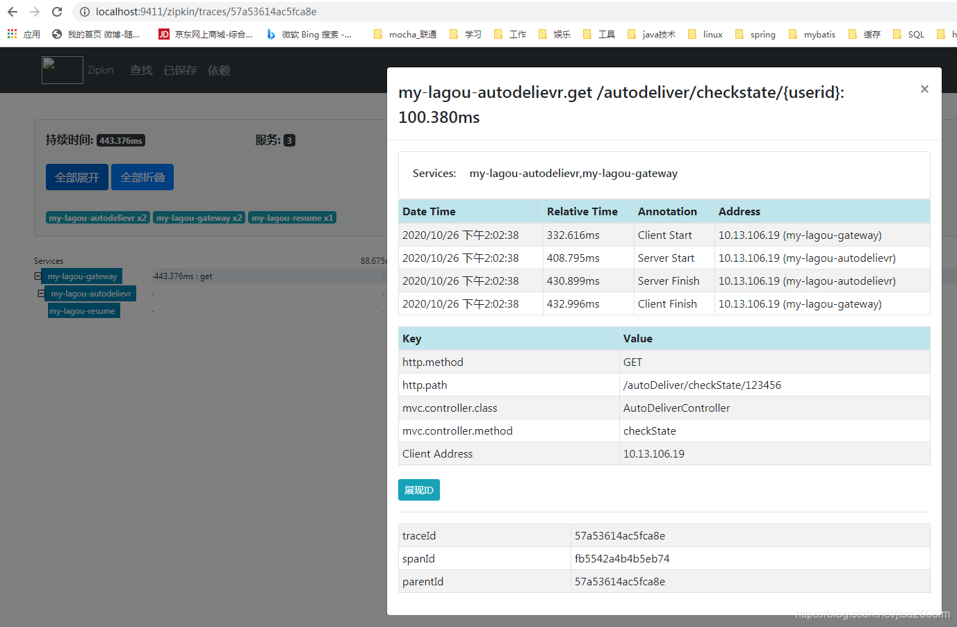 测试:http://localhost:8099/autodeliver/checkState/1545132 (我新复制了一个工程,占用端口8099)