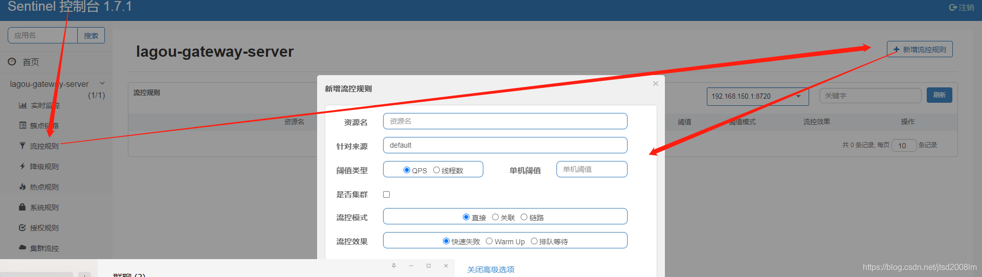 针对来源:Sentinel可以针对调用者进行限流,填写微服务名称,默认default(不区分来源)阈值类型/单机阈值