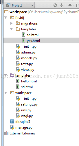 问题解决很简单,如果是用pycharm开发的,请在应用下如workpace-firstdj下创建一个目录templates,把html文件放在这下面就ok了。