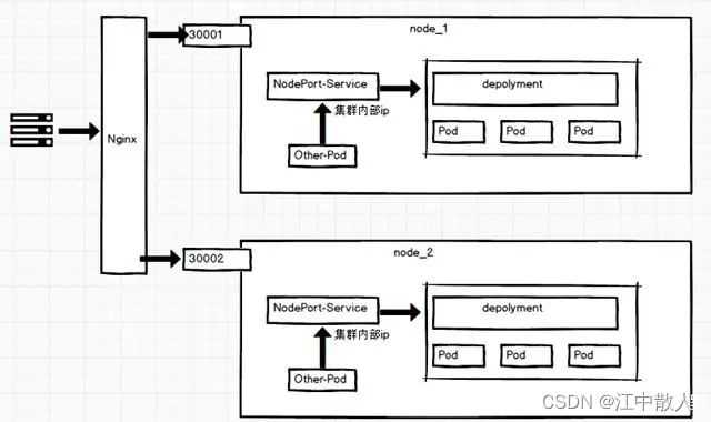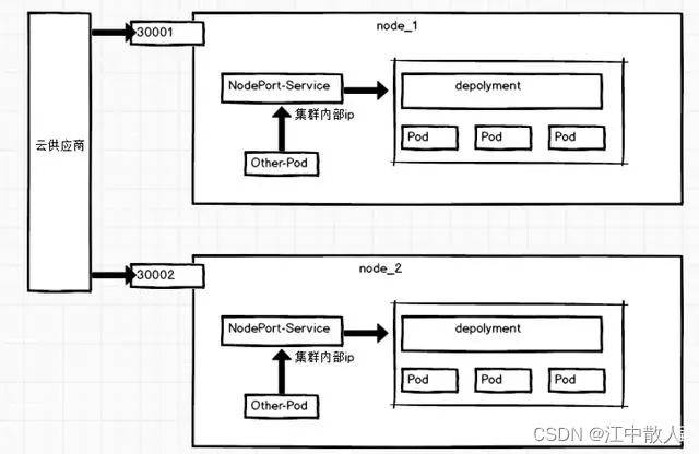 用来对集群外暴露Service,你可以通过访问集群内的每个NodeIP:NodePort的方式,访问到对应Service后端的Endpoint。此机制是在ClusterIP基础上为Service在每台机器上绑定一个端口,这样就可以通过NodeIP: NodePort来访问该服务。