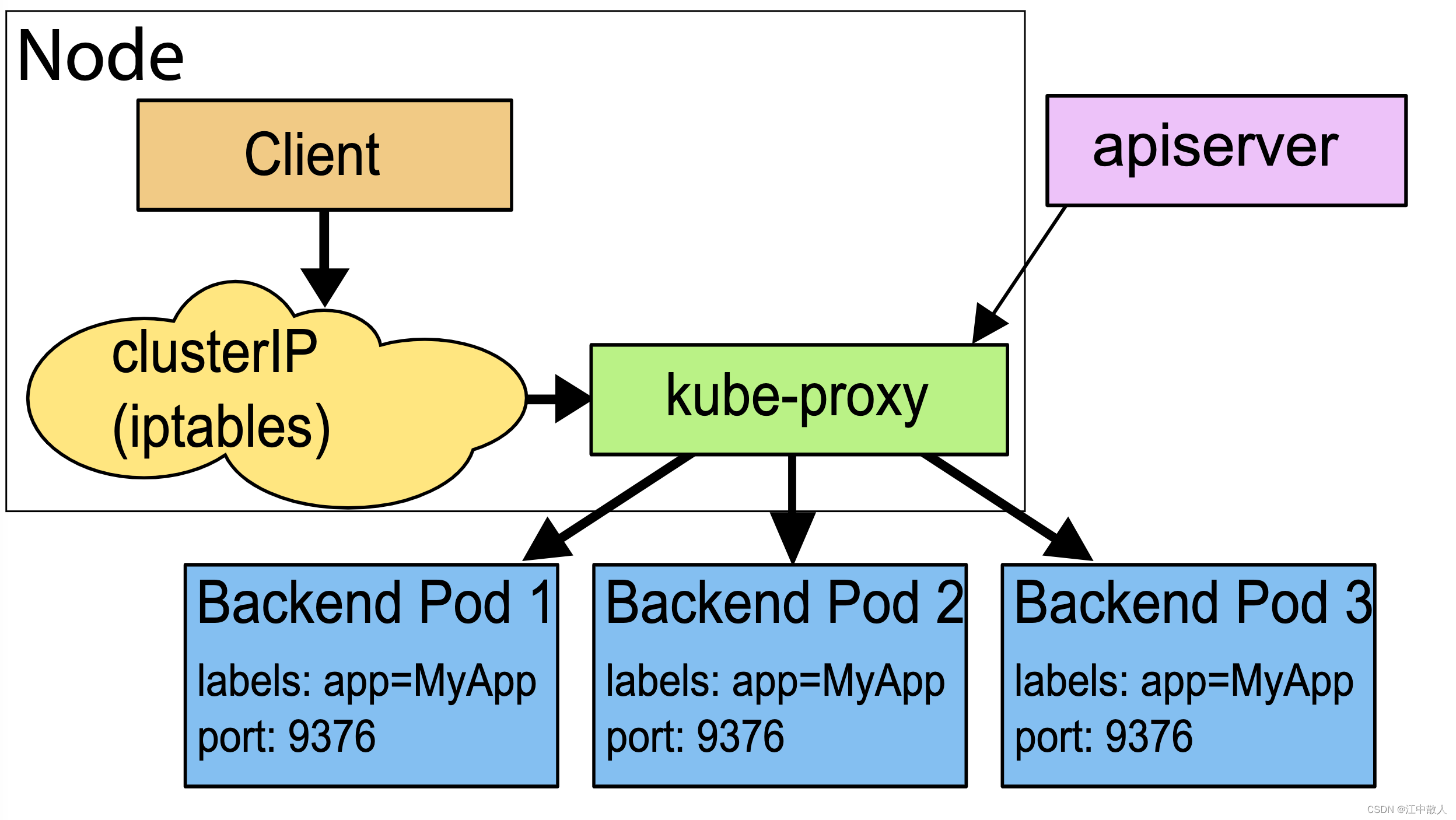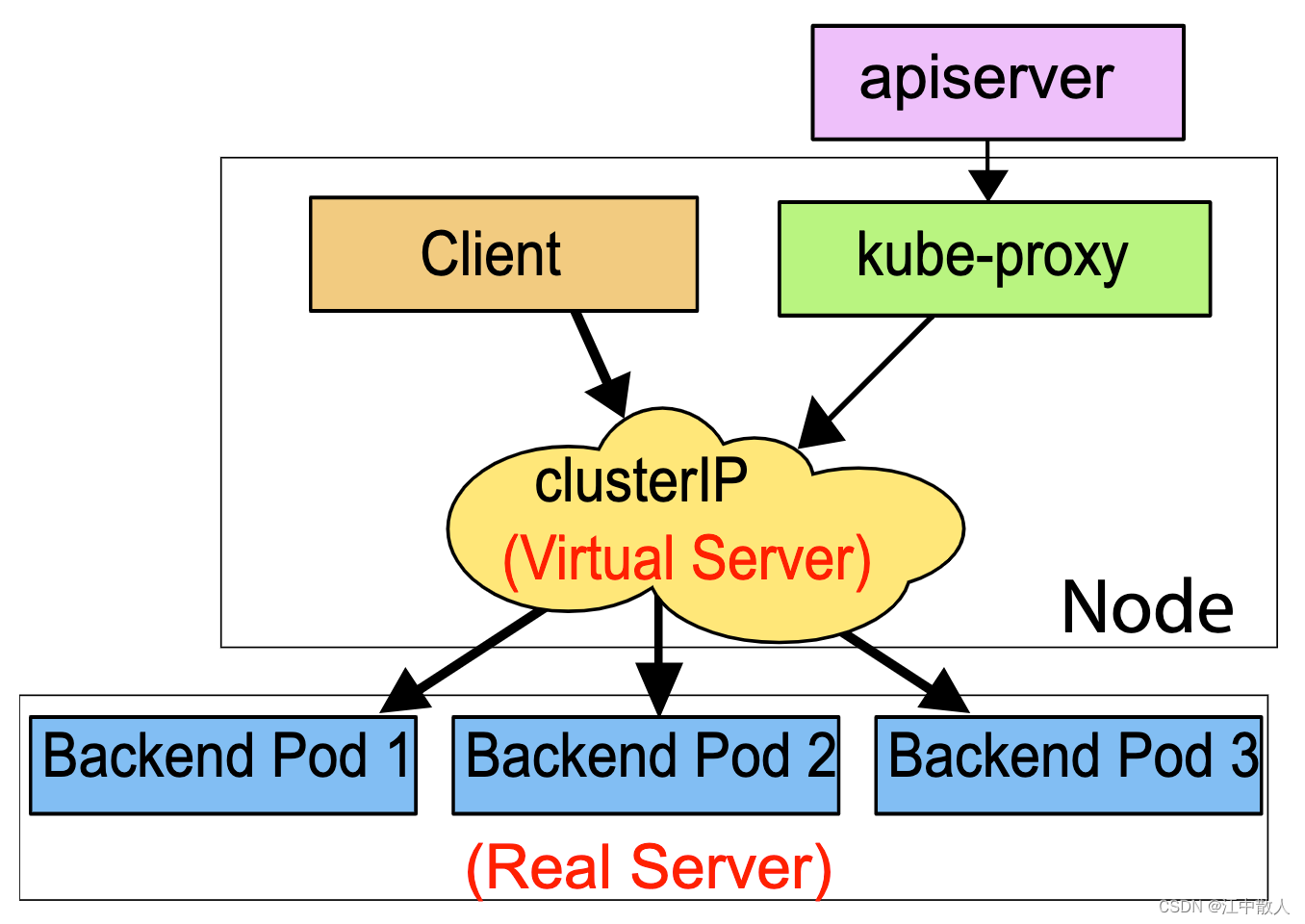 ClusterIP主要在每个node节点使用iptables,将发向ClusterIP对应端口的数据,转发到kube-proxy中。然后kube-proxy自己内部实现有负载均衡的方法,并可以查询到这个service下对应pod的地址和端口,进而把数据转发给对应的pod的地址和端口。