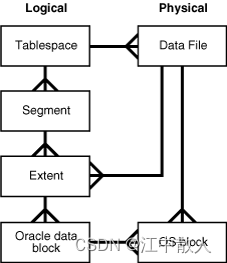 Oracle数据库为数据库中的所有数据分配逻辑空间。数据库分配空间的逻辑单位是数据块(data blocks)、区(extents)、段(segments)和表空间(tablespaces)。从物理层面来说,数据都存储在磁盘上的数据文件中。而数据文件中的数据存储在操作系统块中。