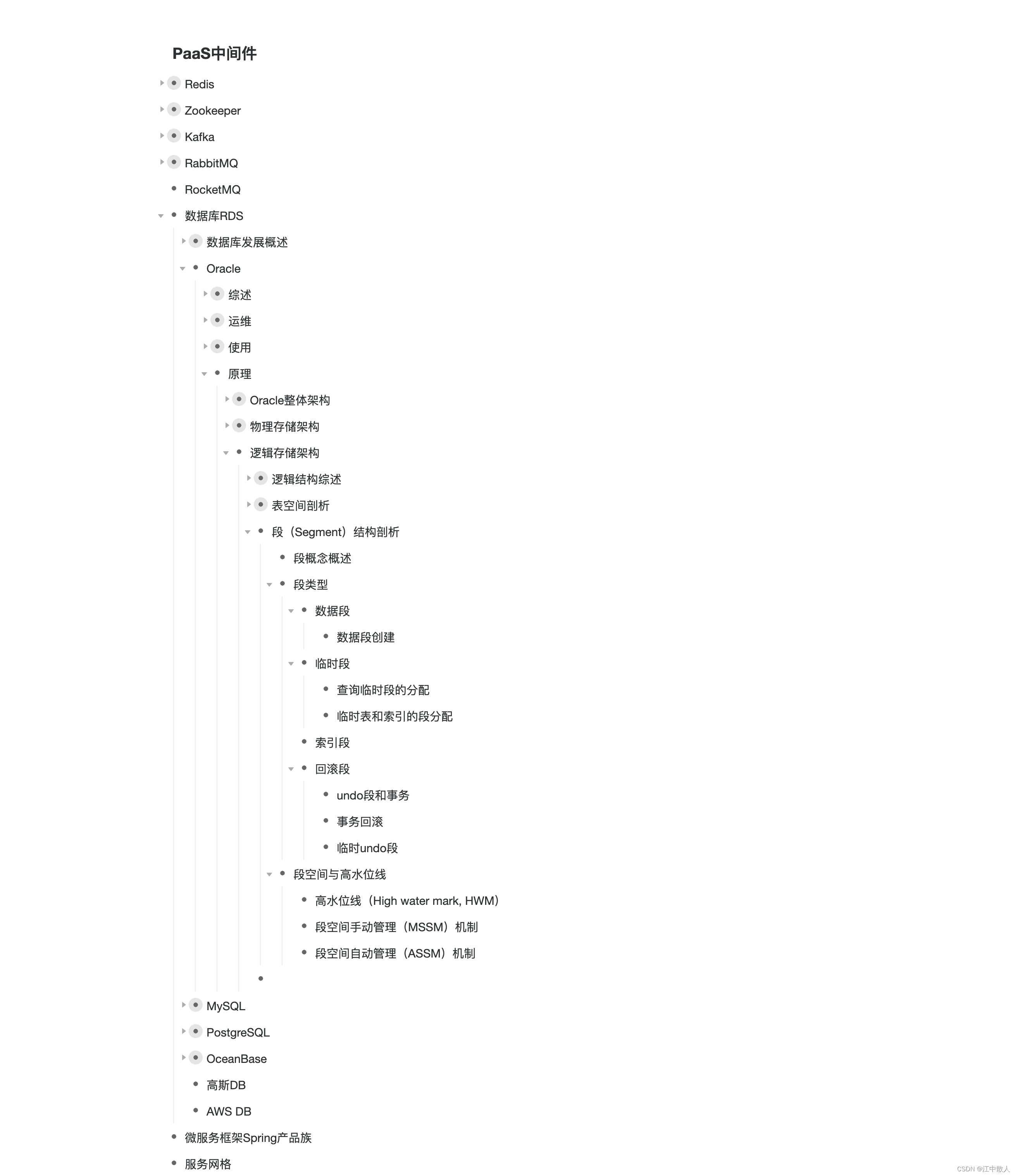 - 临时段:它是Oracle在运行过程中自行创建的段。当一个SQL语句需要临时工作区时,由Oracle建立临时段。一旦语句执行完毕,临时段的区间便退回给系统。