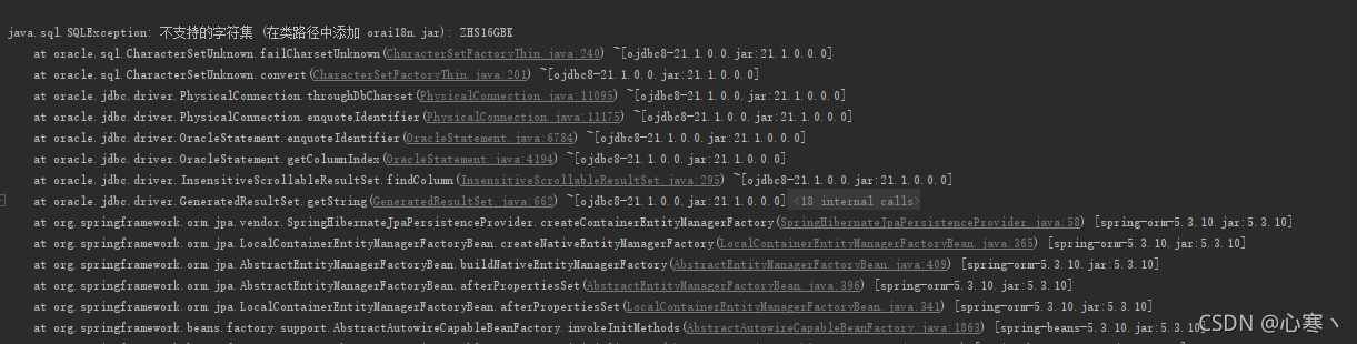 java.sql.SQLException: 不支持的字符集 (在类路径中添加 orai18n.jar): ZHS16GBK
